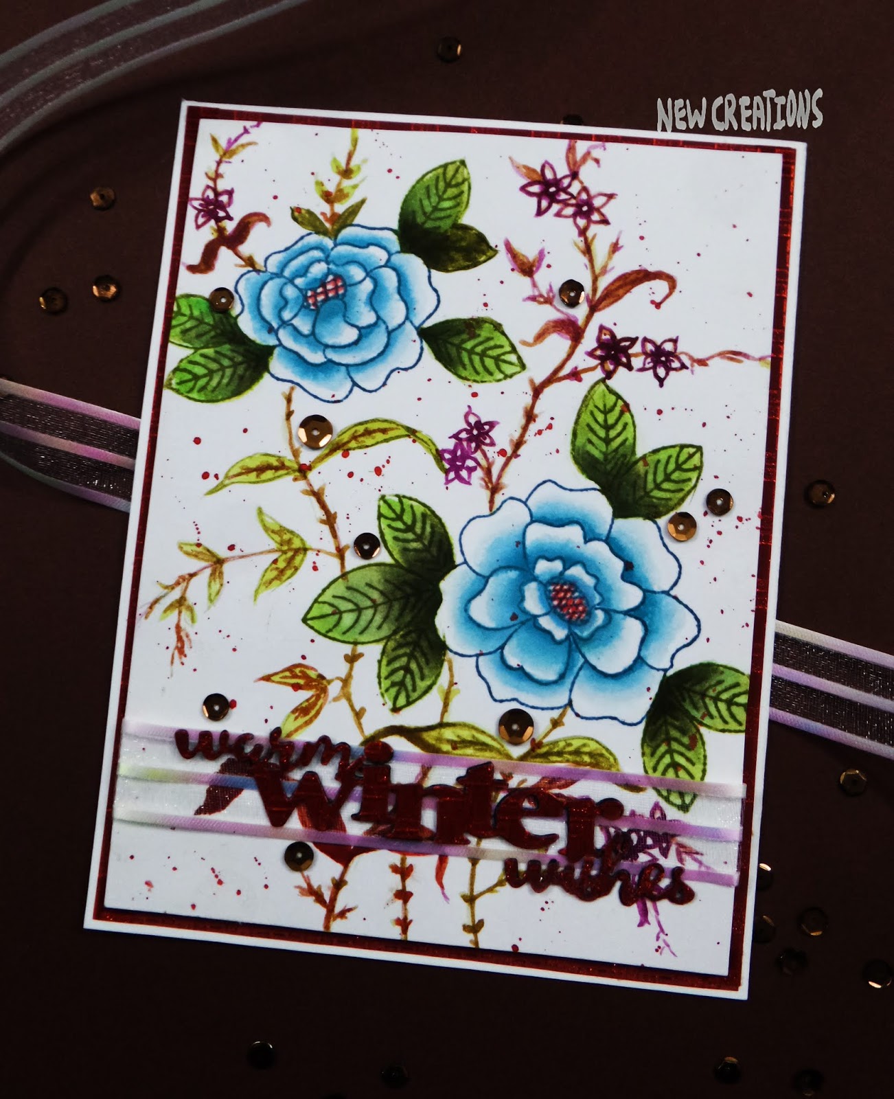 I created a watercolored floral background in winter colors. The rose flower and leave images are from Pretty roses stamp set and the whole background created by me. Tried to keep it with winter theme colors. I just love the tone of colors on this! 😄